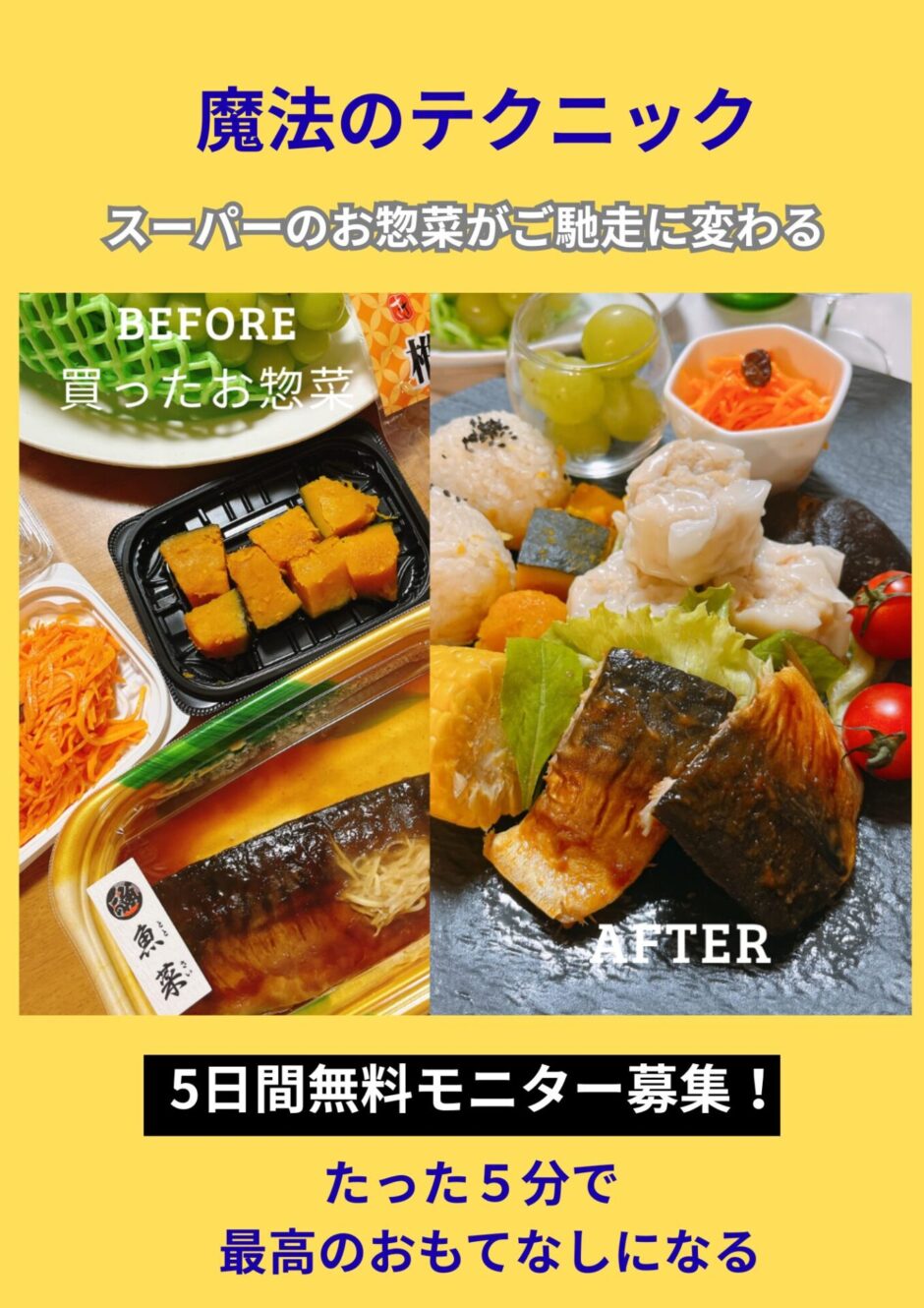 「たった5分でお惣菜が最高のおもてなしに変わる魔法のテクニック」あなたも知りたくないですか?
