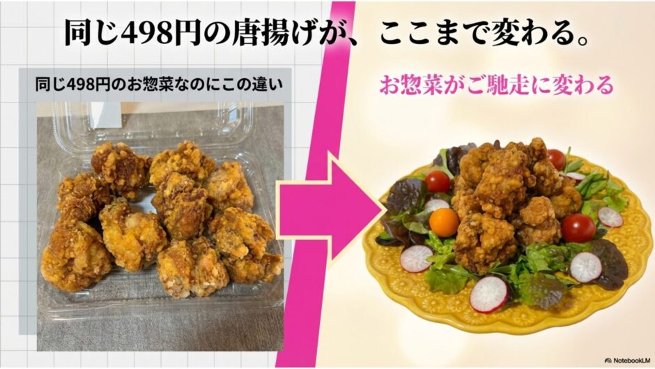 中身は全く同じ、スーパーの498円。でもあなたの感じる幸福感は、500円ですか?5,000円ですか?