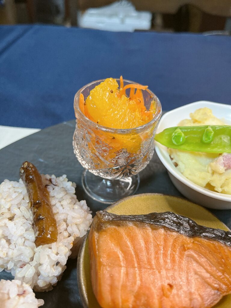 このキャロットラペが入ったガラスの器です。