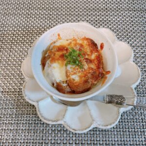 オニオンスープ🧅 材料(3人分) 玉ねぎ・・・2〜3個 オリーブオイル・・・大さじ2 塩・・・2つまみ 水・・・1000ml ブラックペッパー チキンコンソメ・・・大さじ2 作り方 玉ねぎをスライスする。 耐熱ボールに塩 […]