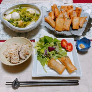 11月も後半になり、寒さが本格的になりました。秋は、キノコの季節です。今日は、たっぷりのキノコを使った炊き込みご飯とミニ春巻きを作ります。春巻きの具を冷ましていたら、息子が春巻きを巻いて揚げてくれました。センスある〜。こ […]
