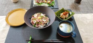 今が旬の初鰹は、あっさりした味わいでたたきに向いています。コンロで炙って作ります。