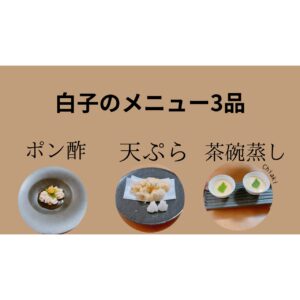 白子のメニュー3品(白子ポン酢、白子の天ぷら、白子の茶碗蒸し)